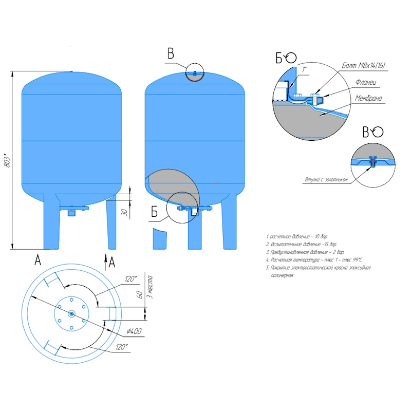 Бак мембранный CW-LV 100 10bar 1" на ножках (серый) ВЕРХНИЙ фланец Waterstry